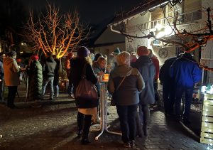 Mit Stolz stellen wir fest, dieses Event jährte sich zum 24. Mal und hat kein bisschen von seiner Anziehungskraft verloren. Im Gegenteil, noch mehr Kinder als all die Jahre vorher, drängelten vor der Bühne herum und erwarteten mit Spannung die Ankunft des Nikolauses. Doch bevor dieser die Kinderherzen erfreuen durfte, musste sich vieles rühren um dem Vorplatz des „Alten Feuerwehrhauses“ ein weihnachtliches Ambiente zu verpassen. Viele Hände mussten trotz dem Nieselwetter zupacken, um einen anerkennenden Rahmen zu schaffen. Ab 10 Uhr am Samstagmorgen wurde kräftig gewerkelt, beginnend mit dem Hütten- und Bühnenaufbau und den Vorbereitungen für den Verkauf von Kinderpunsch, Glühwein, Waffeln und Crepes.